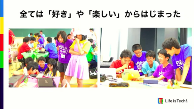 そんな子どもに育てるためには、どうしたらいいの?という問いに対して、讃井さんがLife is Techさんの元受講生の事例を紹介してくださいました。どの子にも共通するのは