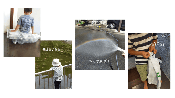 例えば、いつもなら怒ってしまうような場面でも「これは探究中だから思うようにやらせてみよう」とやらせてみたり、「今は探究中だろうから口を出さずに見守ろう」と子どもを黙って長時間観察したり。小さな探究のタネをたくさん発見して、子どもが日常の生活の中で探究を楽しんでいることがわかりました。子どもの探究力を育てたいと思っている方、写真はお勧めです!
