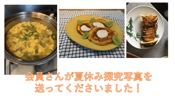 今回、 メンバーさんも夏休み探究の写真を送ってくださいました。下の写真は、中3の息子さんの料理の数々。