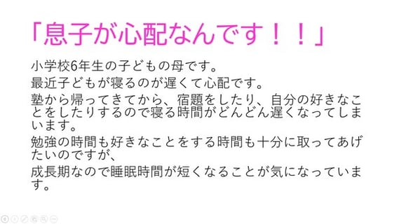 メンバーさんから寄せられたお悩みをもとに、子どもの睡眠について考えました