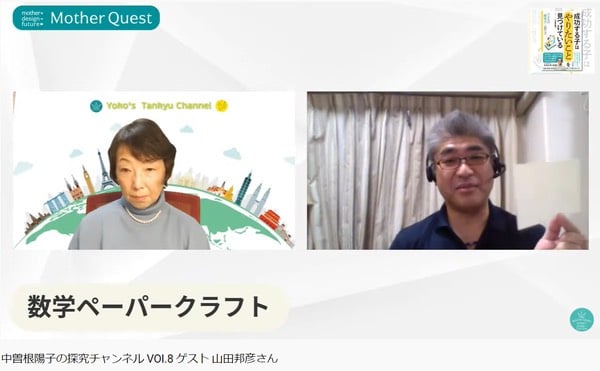 「今まで習ったことがない数学を学ぶ」か「習ったことがあるものをもう一度見なおす」ことがおすすめで、その例として数学ペーパークラフトを実演してくださいました。立体図形の問題が苦手だった私も引き込まれました。百聞は一見に如かずです。是非、動画の35分ぐらいから紙を用意してご覧ください。